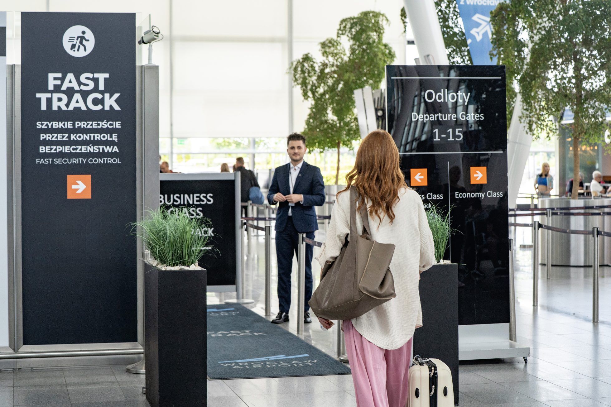 • Nhân viên cầm bảng hiệu logo công ty đón hành khách trước khu vực nhập cảnh